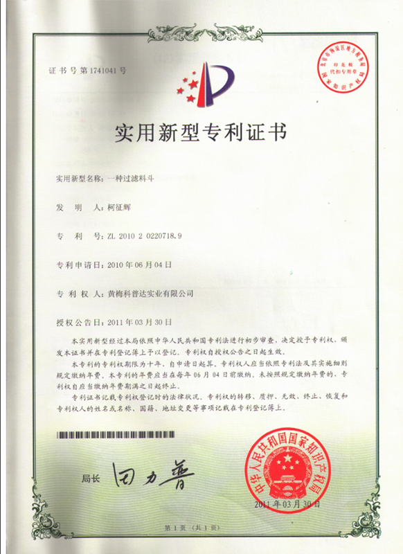 科普達(dá)以人為本,塑造品牌,創(chuàng)新發(fā)展,榮獲全省國(guó)稅百佳納稅人、中國(guó)循環(huán)經(jīng)濟(jì)科學(xué)技術(shù)三等獎(jiǎng)、湖北省著名商標(biāo)、中國(guó)馳名商標(biāo)等多項(xiàng)榮譽(yù)。公司已獲9件專利授權(quán),擁有多項(xiàng)自主知識(shí)產(chǎn)權(quán)。