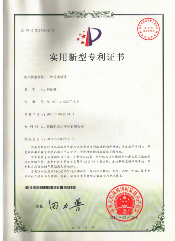 科普達以人為本,塑造品牌,創(chuàng)新發(fā)展,榮獲全省國稅百佳納稅人、中國循環(huán)經(jīng)濟科學(xué)技術(shù)三等獎、湖北省著名商標、中國馳名商標等多項榮譽。公司已獲9件專利授權(quán),擁有多項自主知識產(chǎn)權(quán)。